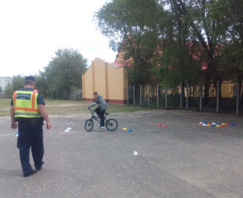 A debreceni rendőrök kerékpáros ügyességi pályát építettek a gyerekeknek, amelyen a biztonságos közlekedést gyakorolhatták.