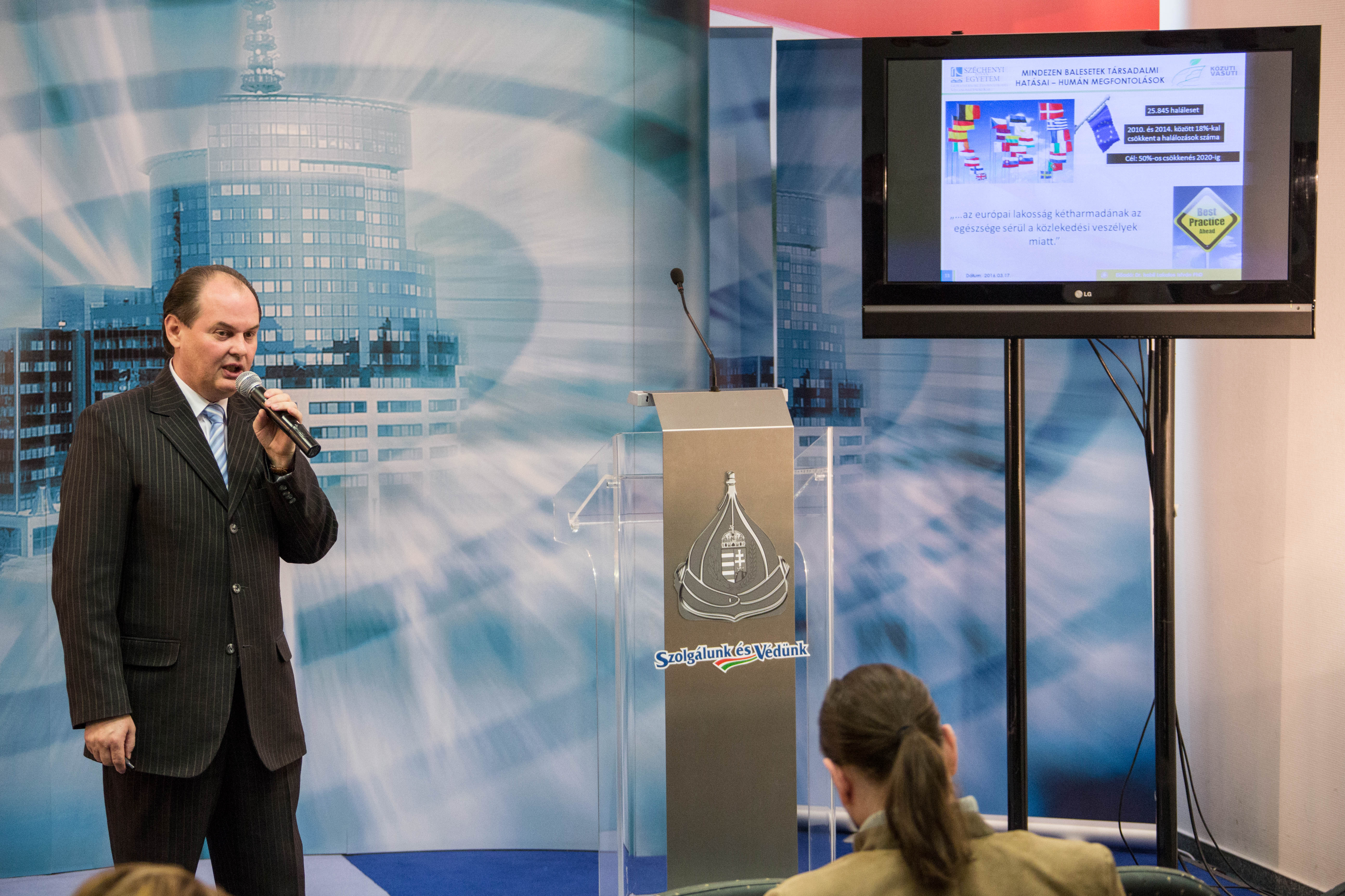 A Rendőrségi Igazgatási Központban 2016. március 17-én 11 óra 30 perckor megtartott sajtótájékoztatón először Dr. habil Lakatos István PhD., a Széchenyi István Egyetem Műszaki Tudományi Kar tanszékvezetője mutatta be a kerékpárosokat és a gyalogosokat ért balestek közelmúltban elvégzett mélyelemzésének tapasztalatait. Előadásában kiemelte az öt legfontosabb baleset típust mindkét közlekedői csoport vonatkozásában, térképpel illusztrálta ezek fő területi eloszlásait, illetve rávilágított az idős korosztály kiemelt veszélyeztetettségére.
