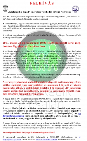 Idén is „Közlekedik a család” vetélkedő Megosztás A Heves megyei rendőrök családok jelentkezését várják.