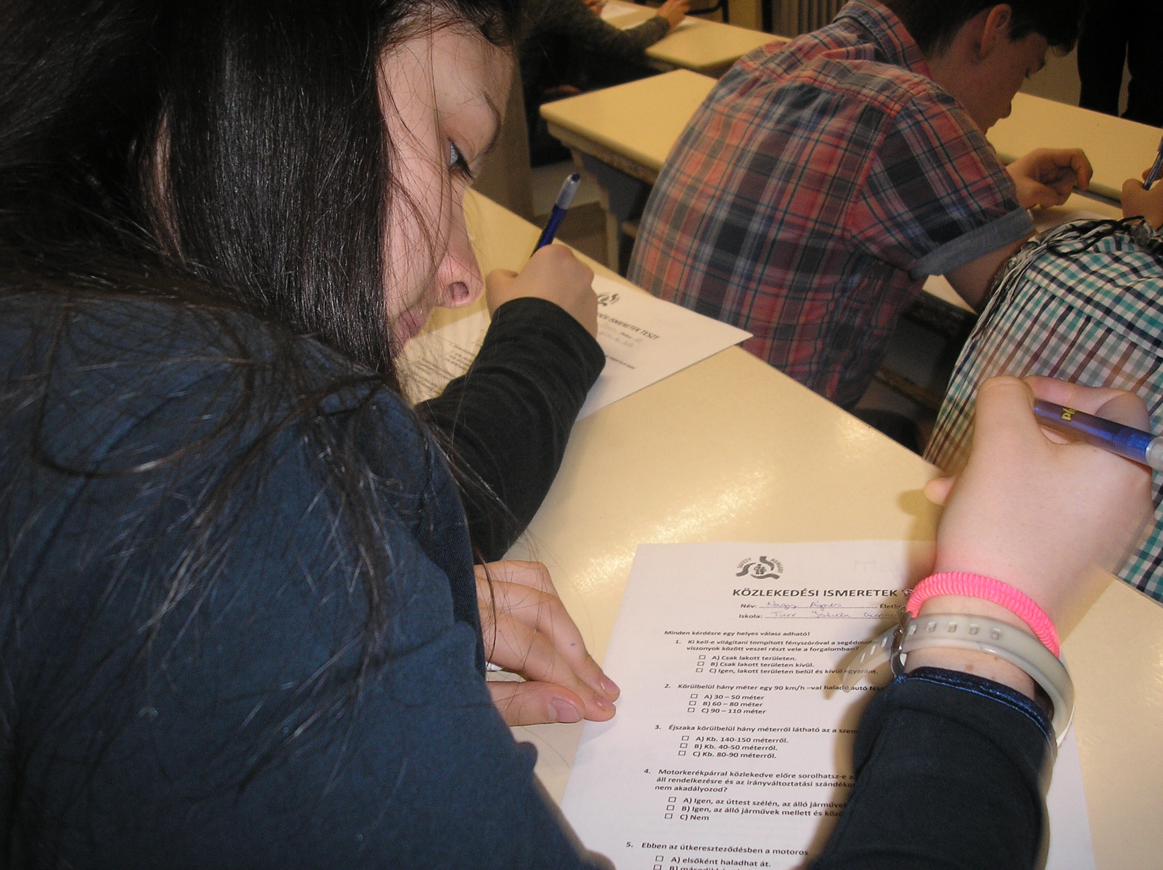 Az elméleti oktatás KRESZ teszt kitöltésével kezdődött és zárult, amely segítségével a diákok felmérhették, milyen ismeretekkel lettek gazdagabbak az előadást követően.