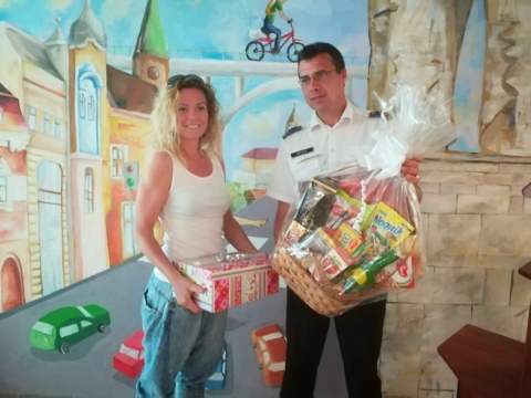 A képen az Eigner család képviseletében Bende Gabriella és a rendőrség részéről Finta Péter rendőr százados látható.