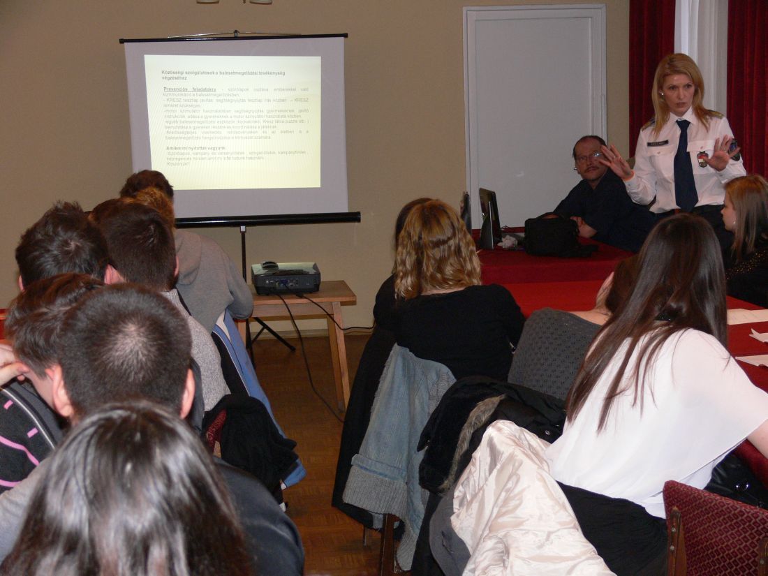 A képzés első napján a jelen lévők megismerkedhettek a Nógrád Megyei Baleset-megelőzési Bizottság programjaival és a különféle baleset-megelőzési eszközökkel. A tanulók részére a szakemberek kampányfilmet vetítettek, továbbá baleset-megelőzési tanácsadást is tartottak. A programban résztvevők a jövőben folyamatos képzésben részesülnek, valamint a márciusi baleset-megelőzési rendezvényeken a rendőrök mellett látnak majd el közösségi szolgálatot.