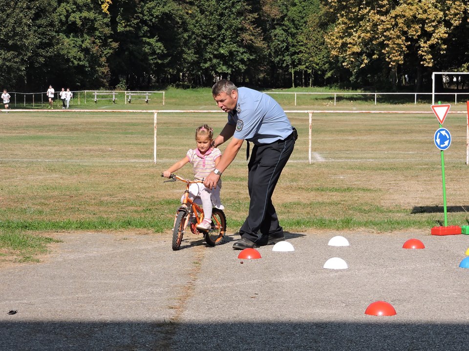 A lovászpatonai kisiskolások és óvodások az iskolarendőrrel gyakorolhatták a kerékpáros közlekedés szabályait 2016. szeptember 27-én.