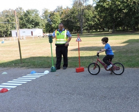 Az egyenruhások elsőként a kerékpározás alapvető szabályairól és a kötelező felszereléseiről tájékoztatták a gyerekeket. Ezután a diákok az iskola udvarán felállított mobil KRESZ-pályát vették birtokba, ahol szabályos közlekedést gyakorolhatták a közlekedési jelzőtábláknak megfelelően. A kerékpáros pályát az iskolával szomszédos kastélykerti óvoda növendékei is kipróbálhatták.