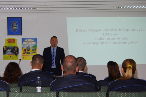 A Magyar Rendőrség 2008 óta működteti „Az iskola rendőre” programot. A Békéscsabai Rendőrkapitányság vezetője fontosnak tartja, hogy a kezdeményezés hatékony legyen. Az iskolarendőr vegyen részt az intézmény nagyobb rendezvényein, a szülői értekezleteken, legyen kapcsolata a pedagógusokkal, gyermekekkel, szülőkkel. Az együttműködés segít feltárni az esetleges problémákat – hangsúlyozta a szakmai nap megnyitóján dr. Bede Sándor r. ezredes, a Békéscsabai Rendőrkapitányság vezetője. Kiemelte, hogy a gyermekek szabályos közlekedésre nevelése és a bűnmegelőzés terén is szükség van a rendőrök ismereteire, tapasztalataira.