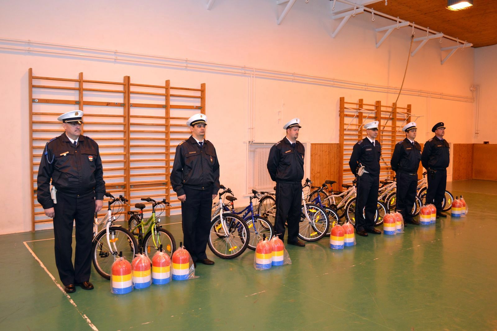 A Fejér Megyei Rendőr-főkapitányság Balesetmegelőzési Bizottság kerékpárokat és bójákat osztott ki a helyi szervezeteinek oktatás céljából.