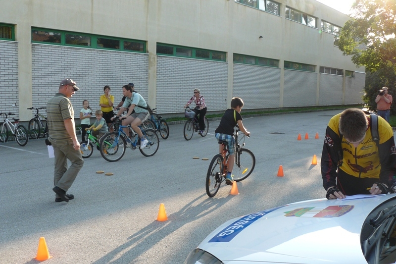 A tapolcai Köztársaság téren már jóval 17 óra előtt gyülekeztek a megmérettetésre váró családok. Amíg a szülők megismerték a feladatokat, a gyerekek közlekedésbiztonsági rajzokat színeztek. A versenyt érkezési sorrendben kezdték a résztvevők, gyerekek, felnőttek egyaránt lelkesen vágtak neki a távnak. A város kerékpárútján haladva, a közlekedési jelzőtáblákat jól megfigyelve kellett közlekedniük. A felállított állomásokon KRESZ-ismereteikről adhattak számot. A városi rendezvénycsarnok mellett pedig kerékpáros ügyességi pálya várta a gyerekeket.