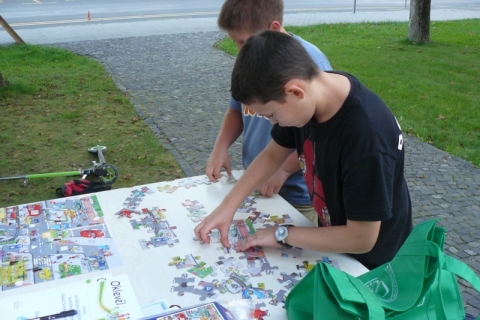 A célállomásig azonban volt még néhány megoldandó feladat, többek között a Batsányi János Gimnázium kollégiumának falain látható veszélyforrásokat jelző feliratokat, ábrákat összeszámolni, egy útbaeső vendéglátóegység dohányzási szabályait feltüntető táblát megtalálni, a végén pedig egy közlekedési kirakójátékot időre teljesíteni.
