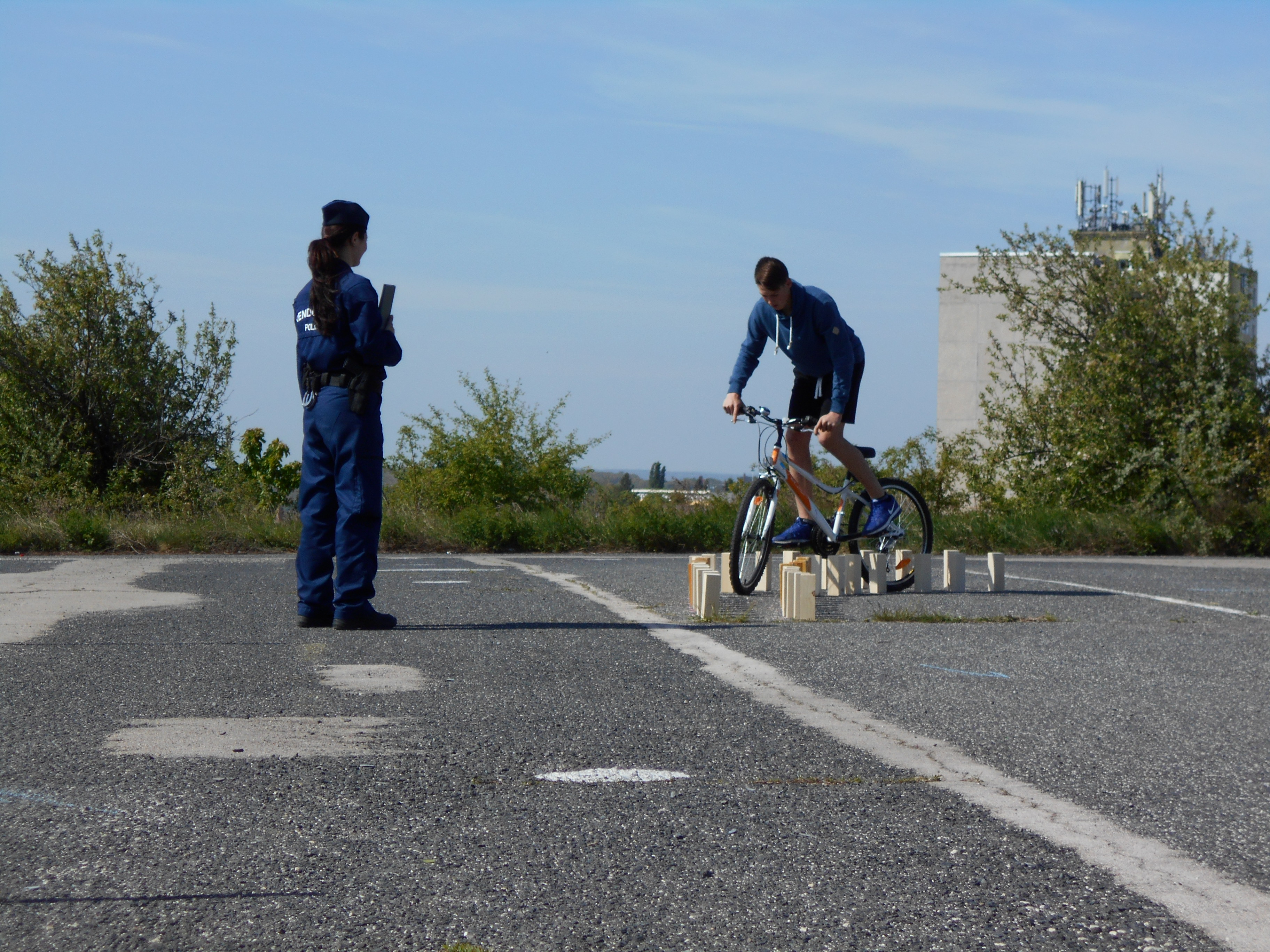 A várpalotai rendőrök az egyik helyi autósiskola telephelyén tartották meg a Kerékpáros Iskola Kupa verseny városi fordulóját 2017. április 25-én.