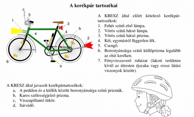 • A közúti forgalomban lévő kerékpár pedig legyen felszerelve az alábbi, kötelező tartozékokkal: