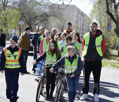 A Szolnoki Rendőrkapitányság munkatársa a kerékpárral érkező gyermekeknek rövid tájékoztatást adott a kerékpáros közlekedés szabályairól, valamint felhívta a figyelmüket a baleset-megelőzés fontosságára.
