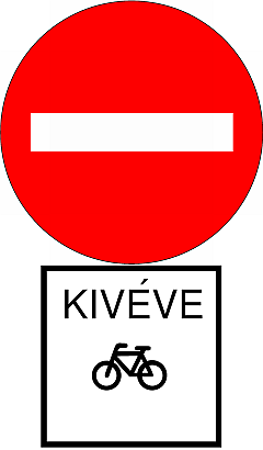 A „Behajtani tilos” tábla azt jelzi, hogy az egyirányú forgalmi útra ebből az irányból behajtani tilos. Ilyen táblánál kerékpárral csak akkor szabad behajtani amennyiben a tábla alá egy kiegészítő kerékpárt mutató ábrát helyeznek el.