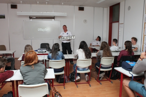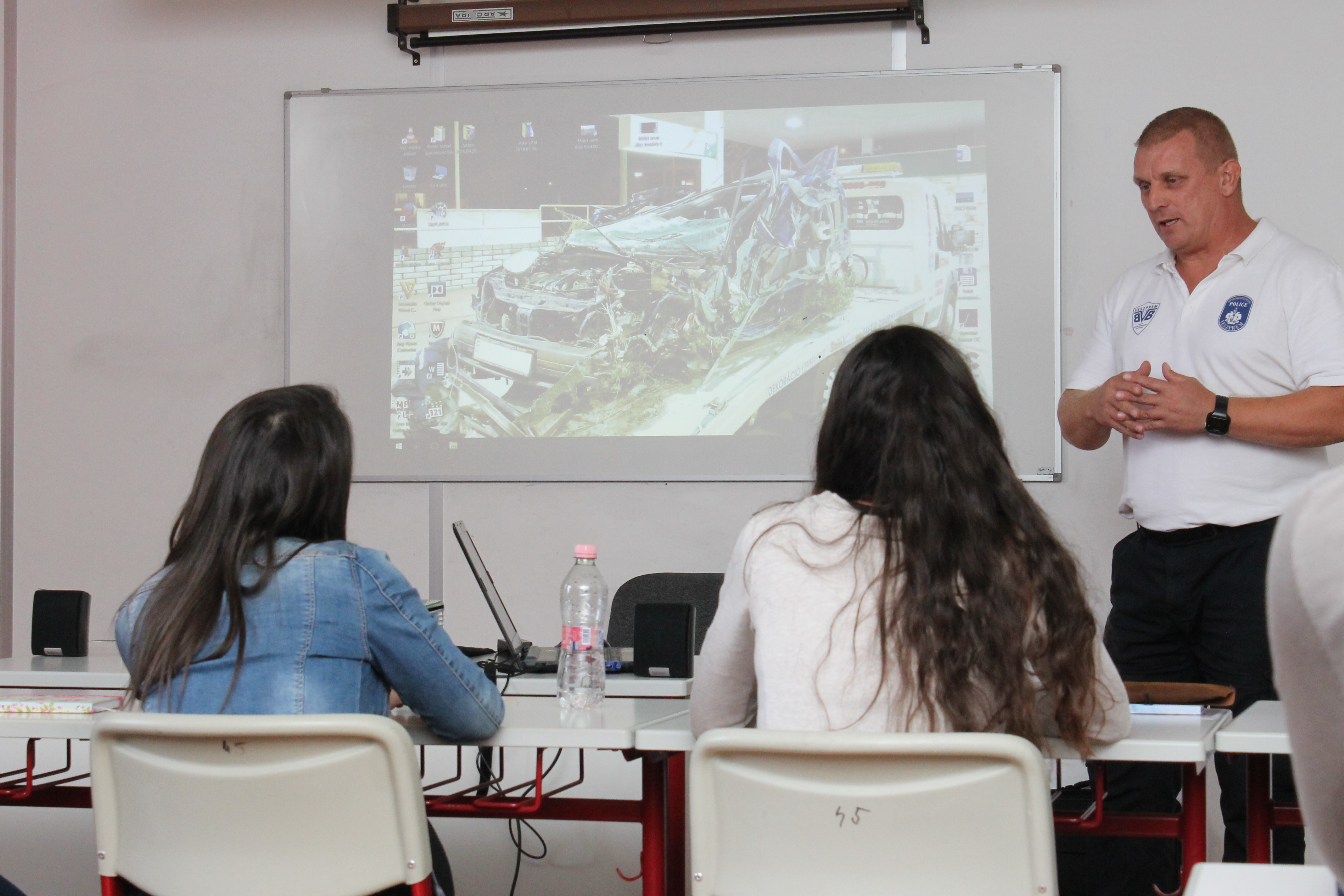 A Közlekedésrendészeti Osztály munkatársa az általuk készített kisfilm segítségével mutatta be, hogy milyen következményekkel járhat egy figyelmetlen mozdulat gépkocsivezetés közben. Az egyenruhás arról is beszélt a diákoknak, hogy a közúti jelzőtáblák és a szabályok betartása a gépkocsivezetők biztonságát szolgálja.
