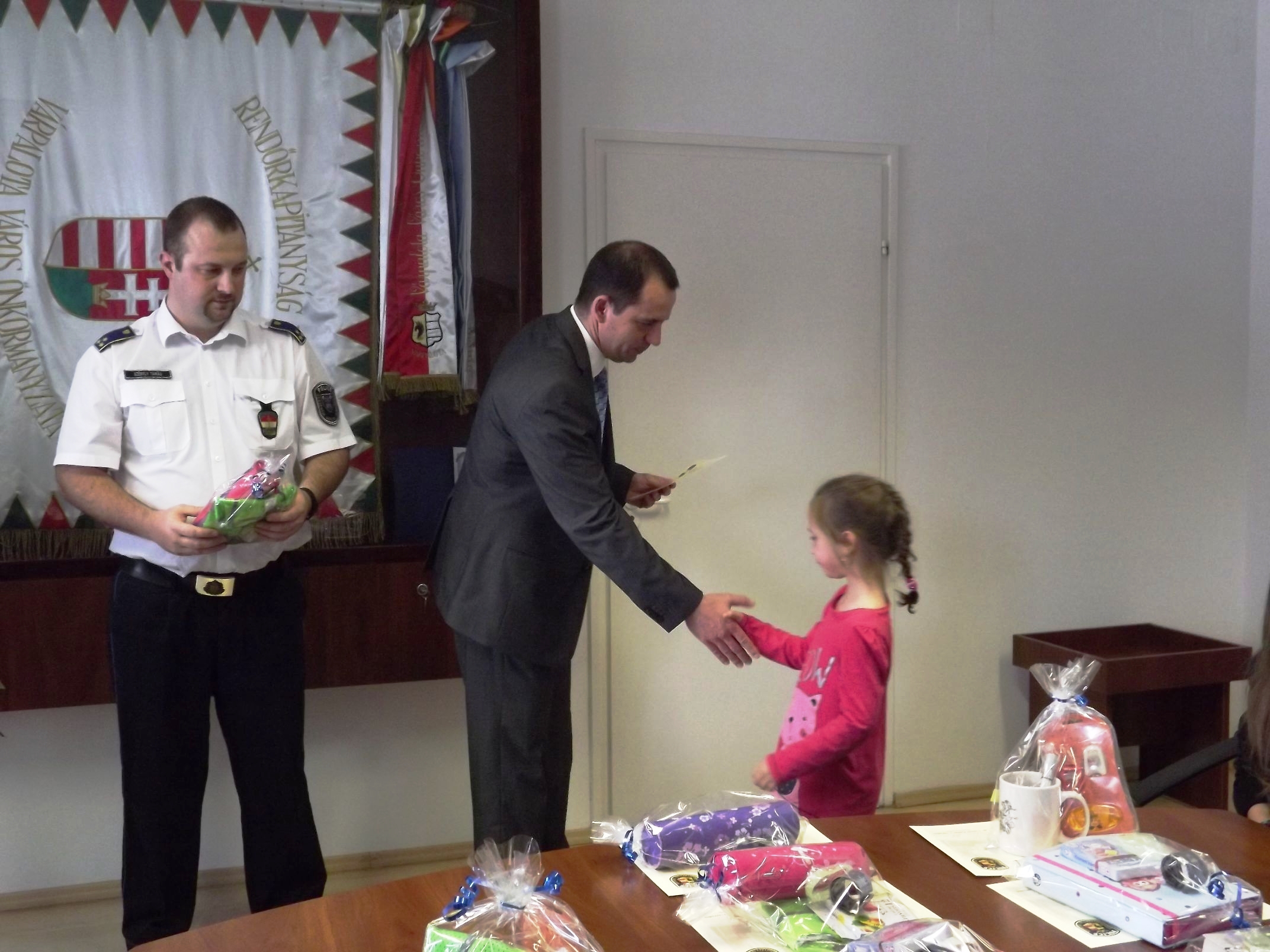 Az ünnepélyes eredményhirdetésen dr. Csányi Zoltán rendőr ezredes, rendőrkapitány köszöntötte a gyerekeket, a kísérő szülőket, pedagógusokat, majd kihirdette a helyezéseket és Székely Tamás rendőr századossal közösen adták át az ajándékcsomagokat. A díjazott gyerekrajzokat a Várpalotai Rendőrkapitányság továbbítja a verseny megyei fordulójára.