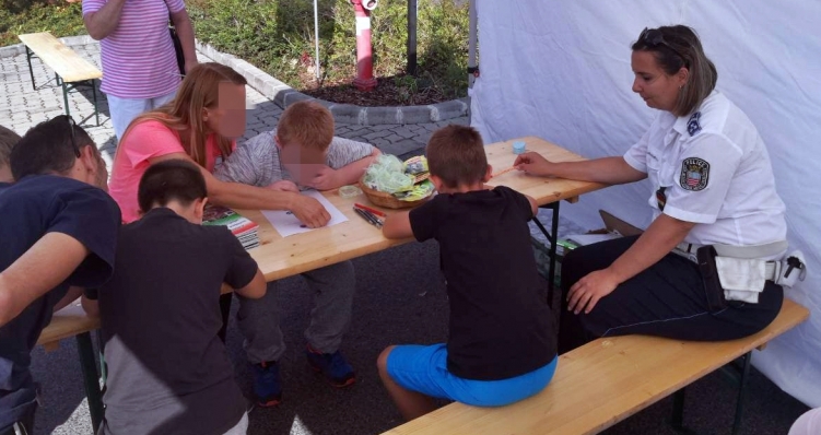 A rendezvény látogatóit láthatósági mellénnyel, láthatósági karkötővel, matricákkal lepték meg a rendőrök.