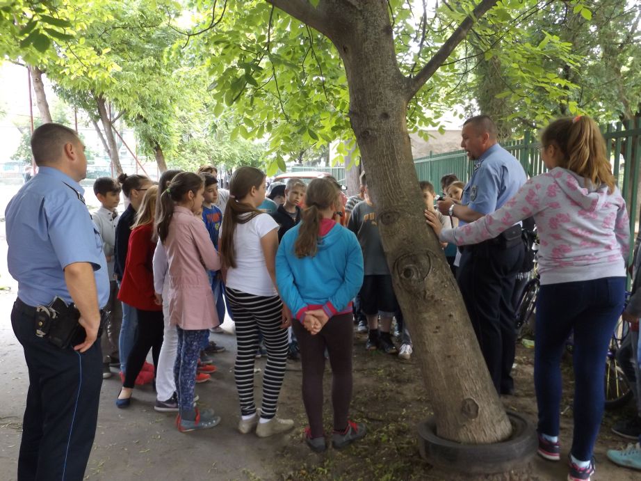 Mezőfényi Szilárd r. főtörzsőrmester a fiatalokat leginkább érintő gyalogos és kerékpáros szabályokra hívta fel a figyelmüket. Közösen megbeszélték a bicikli kötelező felszereléseit és az ezzel a járművel közlekedőkre vonatkozó szabályokat (járdán, úttesten, kerékpárúton, kerékpársávon, lakó-pihenő övezetben kerékpározás), valamint kitértek a fejvédő viselésének fontosságára és a láthatósági mellény használatának szabályaira kerékpározás közben. A foglalkozás célja az volt, hogy a diákok felkészítésével megelőzzük a közlekedési baleseteket a közelgő nyári szünetben is.