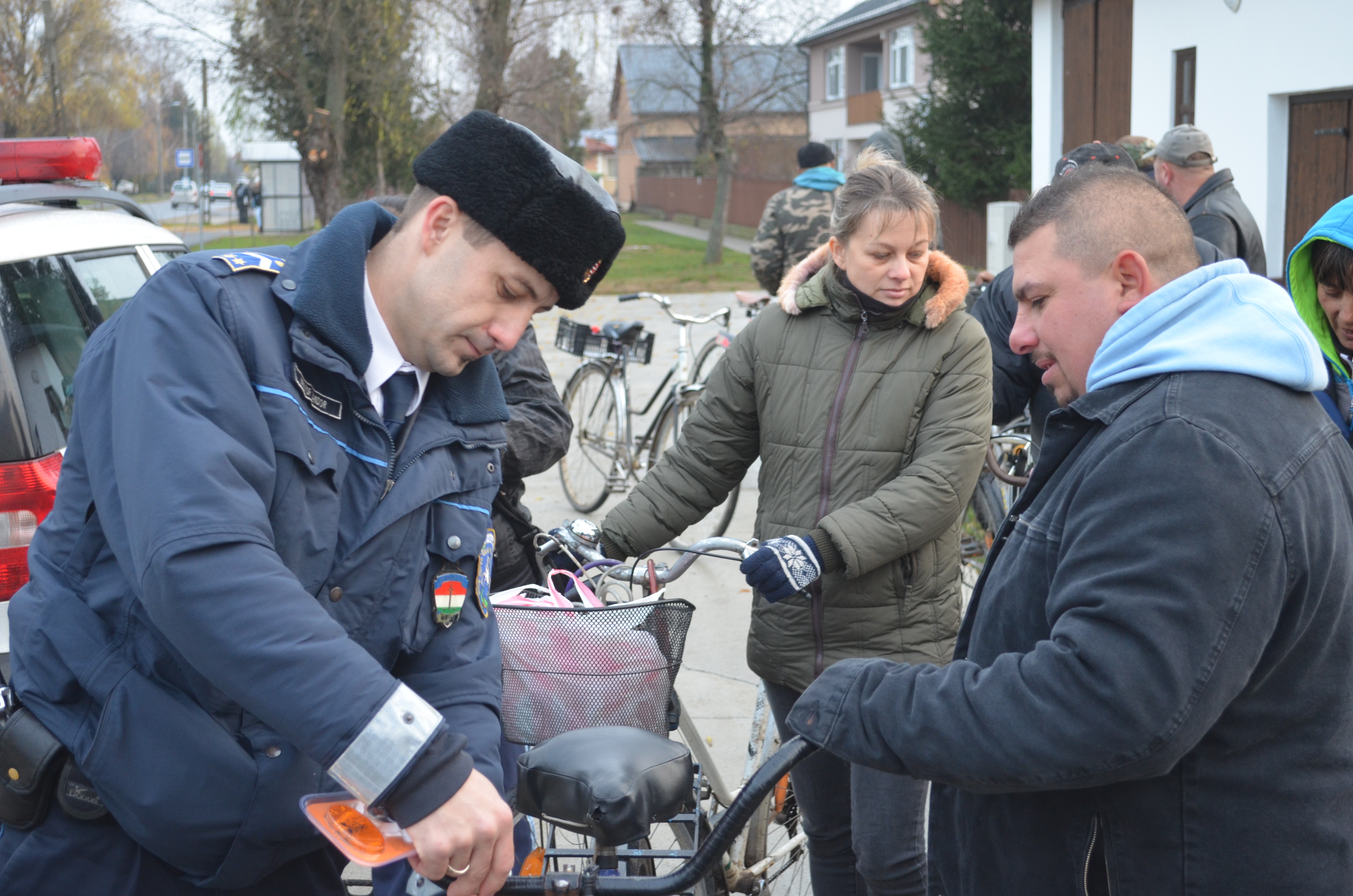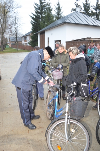 A hajdúhadházi rendőrök lámpákat ajándékoztak a kerékpárral közlekedők részére.