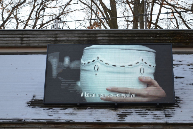 A Heves megyei rendőrök kivetítőn is figyelmeztetnek az évszaknak megfelelő biztonságos közlekedésre.