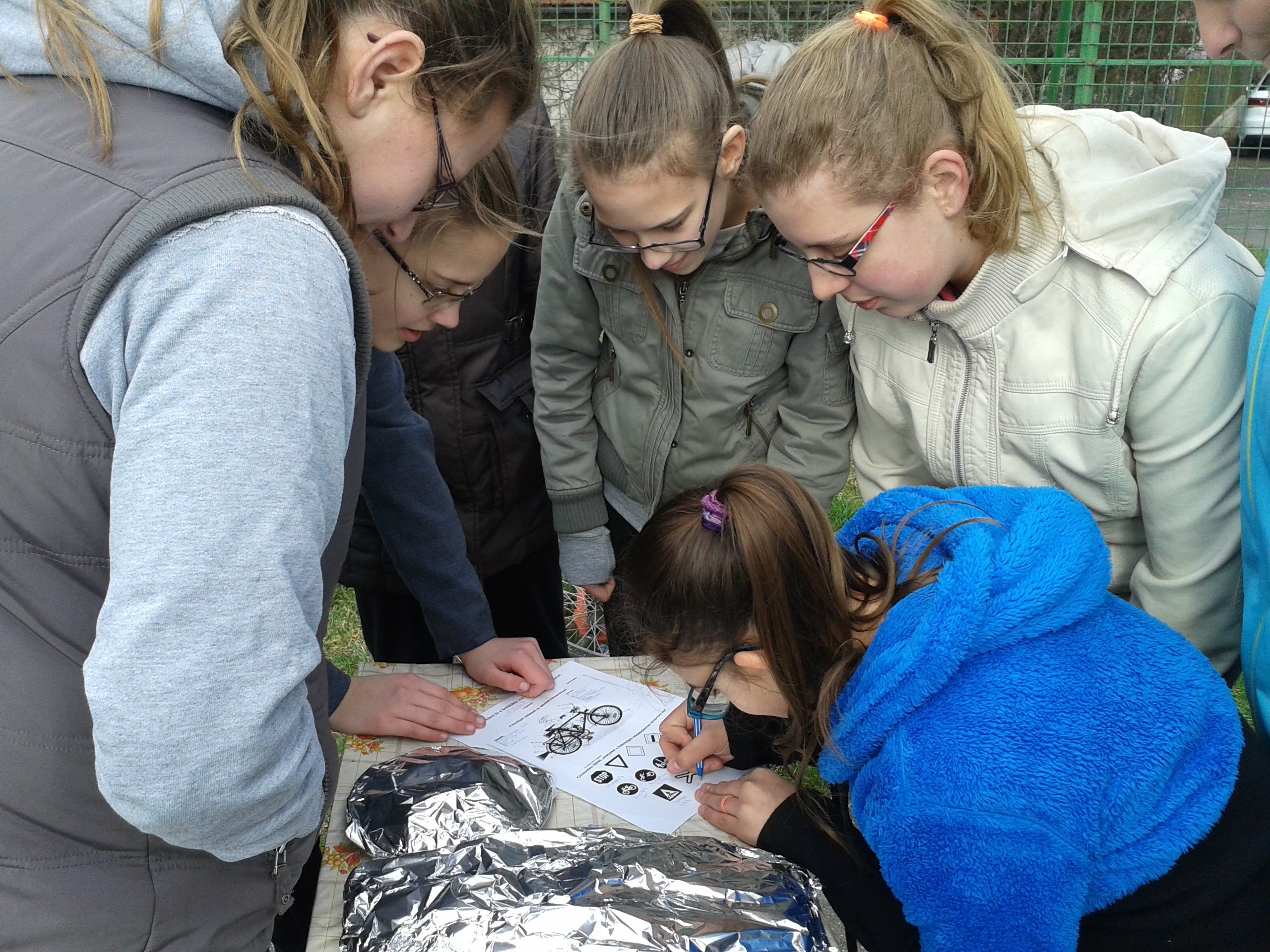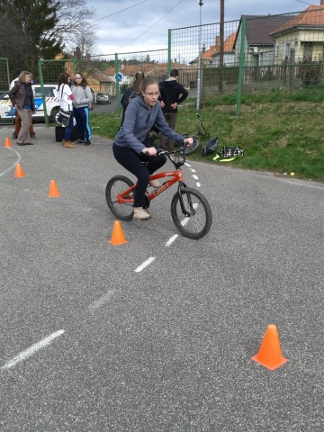 Ezután következett a gyakorlati feladat, ahol a tanulóknak kerékpáros akadálypályán kellett végighaladniuk.