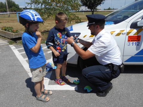 A kerékpáros bukósisakot, valamint a térd-és könyökvédőt Borsos Dávid rendőr főtörzsőrmester körzeti megbízott segítette fel a gyermekekre.