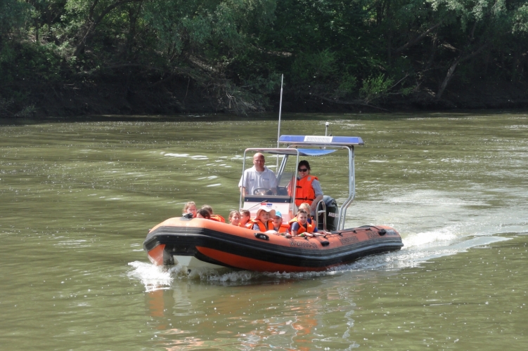 A résztvevők a Tiszai Vízirendészeti Rendőrkapitányság szolgálati kisgéphajóin utazva gyakorlatban is elsajátíthatták, hogyan kell a víziközlekedés során a járműben a vízen való tartózkodás magatartási szabályait betartani.