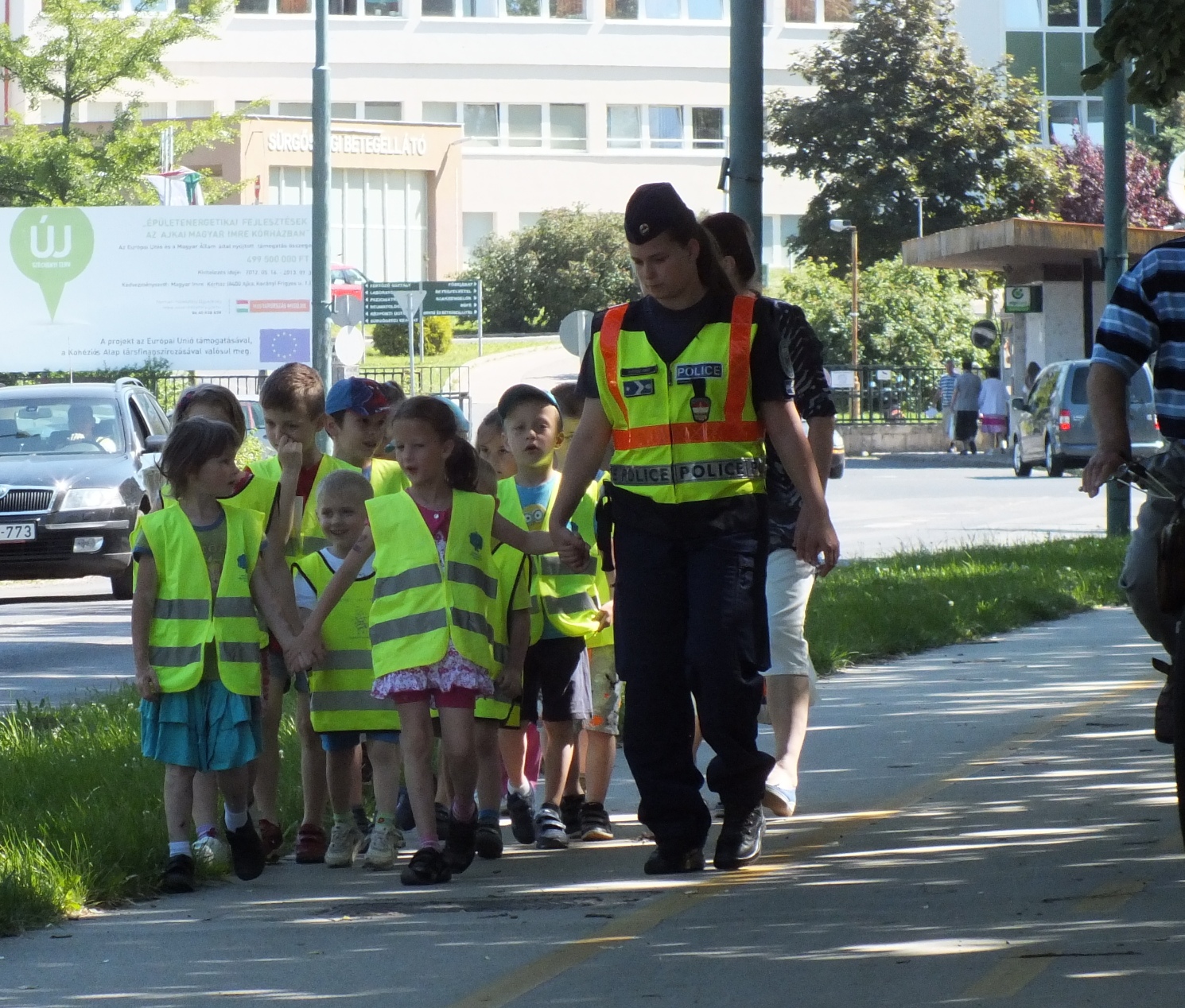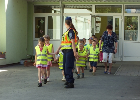 Az „Ovijárat” program keretében egy városi séta alkalmával ismerkedhettek meg az ajkai óvodások a gyalogos közlekedés szabályival.