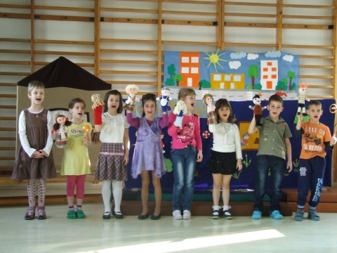 Ajkán a Vízikék Óvoda és a Hétszínvirág Óvoda, továbbá a halimbai Hársfa Óvoda mutatta be színvonalas bábjátékát 2015. március 11-12-én délelőtt.