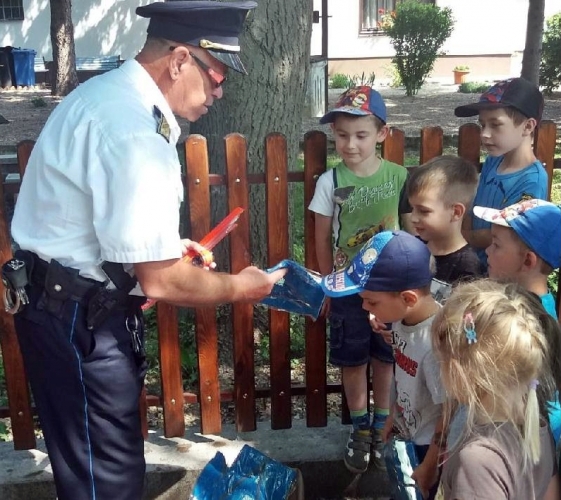 A program végén a rendőrök ajándéktárgyakkal kedveskedtek az óvodásoknak.