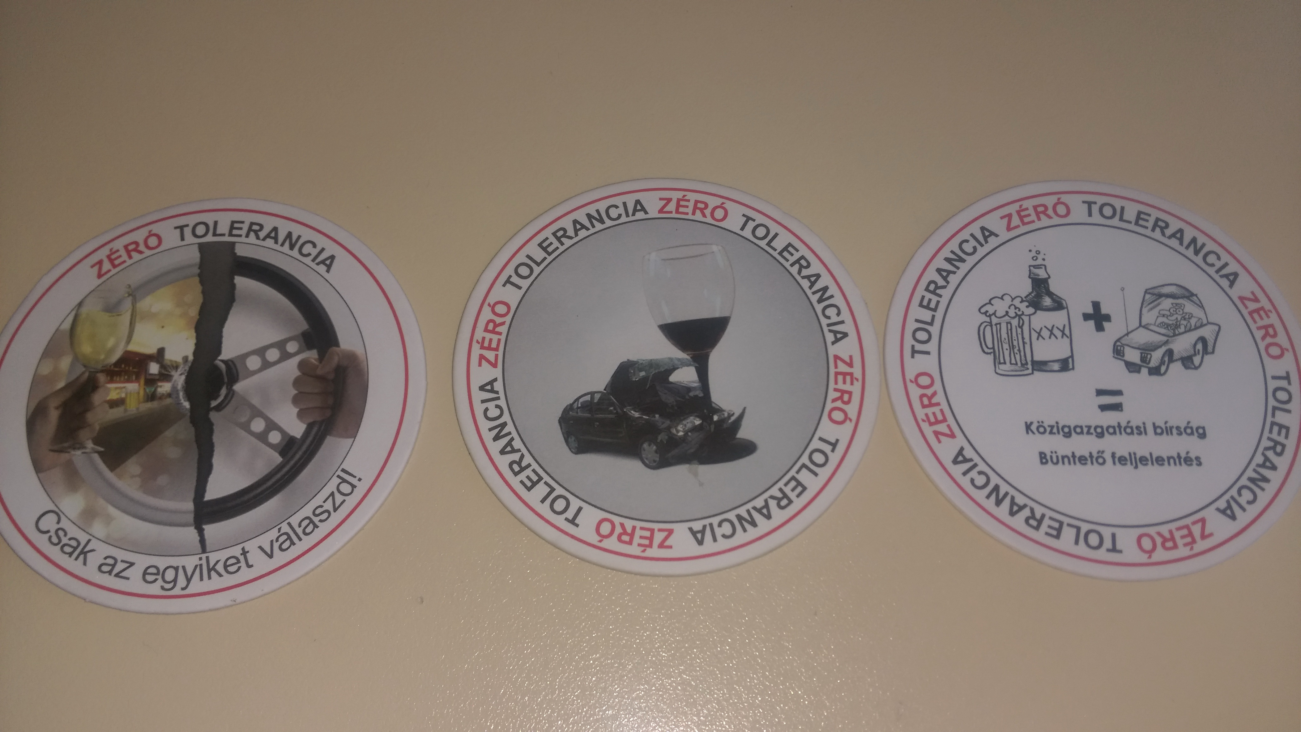 A Jász-Nagykun-Szolnok Megyei Balesetmegelőzési Bizottság kiemelt figyelmet fordít az ittas járművezetésre történő figyelemfelhívásra. A bizottság a „Zéró tolerancia” jegyében háromezer darab megelőzési feliratokkal és kép illusztrációval ellátott söralátétet készíttetett, amelyet a megyében az akcióhoz csatlakozó éttermekben, sörözőkben, vendéglátóhelyeken osztanak szét a rendőrök.