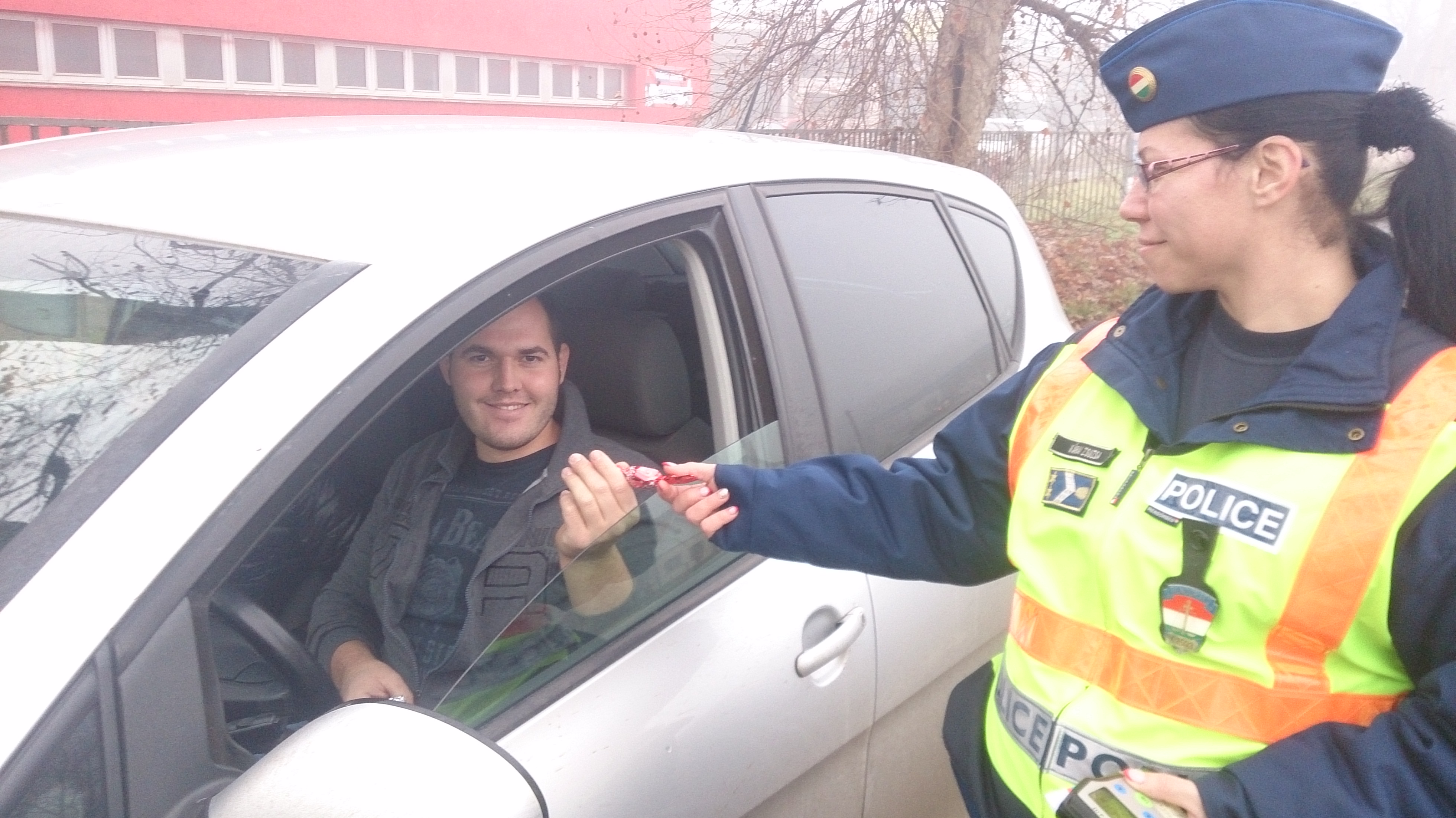 A Hajdúszoboszlói Rendőrkapitányság munkatársai a jogsértések megelőzése érdekében 2015. december 23-án közúti ellenőrzést tartottak a rendőrkapitányság illetékességi területén. A rendőrök a 4. számú főúton, a Hajdúszoboszló irányába közlekedő gépjárművezetőkkel szemben alkoholszondát alkalmaztak. Azt a sofőrt, akinél az eredmény negatív lett – tekintettel a Karácsonyi ünnepekre – a rendőrök szaloncukorral jutalmazták, amelyet a járművezetők meglepetéssel és örömmel fogadtak, majd az intézkedők boldog Karácsonyt kívánva engedték őket tovább. Az ellenőrzés során egy debreceni járművezetőnél mutatott pozitív értéket az alkoholszonda, így őt további mintavétel céljából előállították a rendőrkapitányságra.