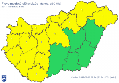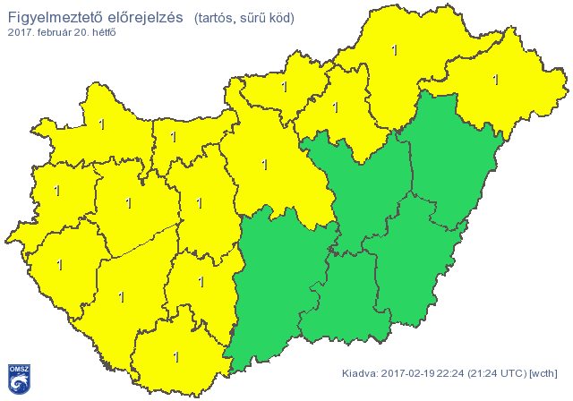 Az Országos Meteorológiai Szolgálat 2017. február 19-én 22 óra 28 perckor kiadott időjárás-előrejelzése szerint az ország nagy részén ismét ködre, helyenként ónos esőre kell számítaniuk a közlekedőknek. A rendőrség továbbra is óvatosságra int!