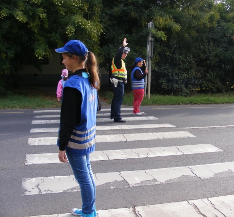 Folytatódik a gyermekek biztonságát erősítő baleset-megelőzési program. Békés megyében 2014. május 5-étől 2014. május 30-áig 11 iskolánál diákok segítik társaikat a gyalogátkelőhelyeken való átjutásban.