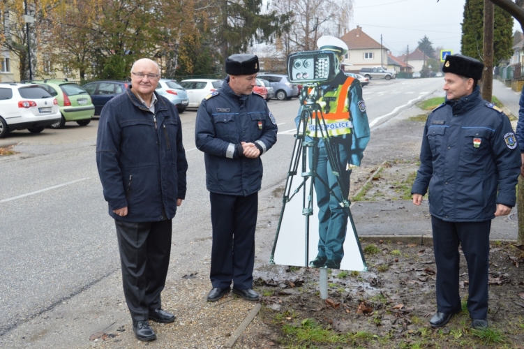 A balesetmentes közlekedés érdekében sebesség-ellenőrző rendőrt ábrázoló makettet helyeztek ki Felsőtárkányban.