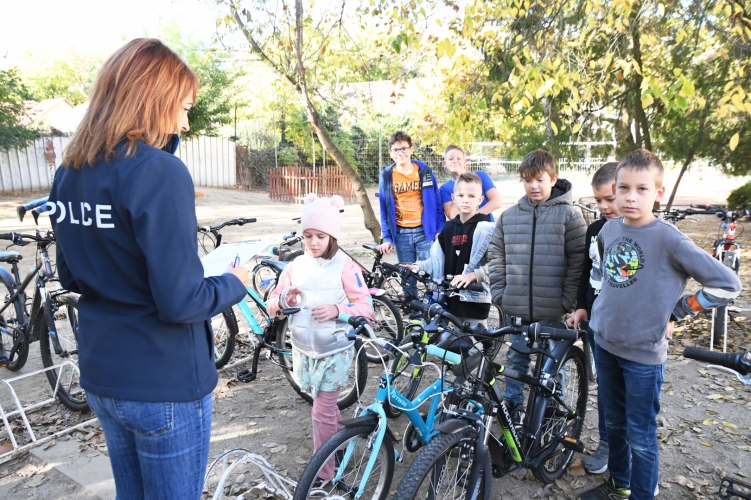 A Kassai Úti Magyar-Angol Két Tanítási Nyelvű Általános Iskola iskolarendőre ellenőrizte a gyerekek kerékpárjait.