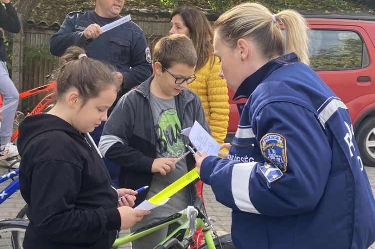 A Berettyóújfalui Rendőrkapitányság munkatársai a biztonságos közlekedés érdekében ellenőrizték az iskolába kerékpárral járó gyermekek kétkerekűit.