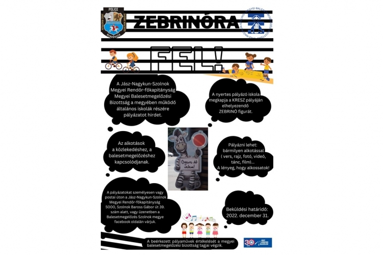 A Jász-Nagykun-Szolnok Megyei Balesetmegelőzési Bizottság közlekedéssel kapcsolatos pályaműveket vár. Mottó: Alkossatok!