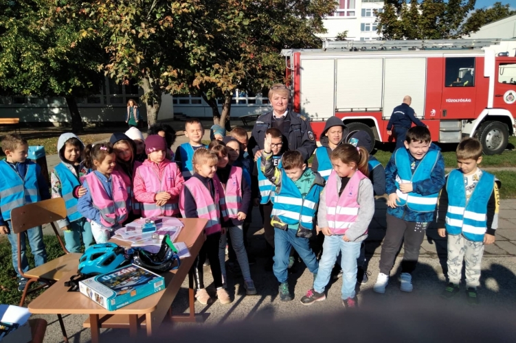 Az Autómentes Nap alkalmából az egyenruhások baleset-megelőzési tanácsokkal látták el a gyerekeket.