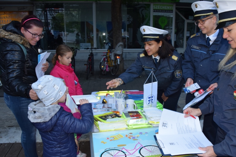 A rendőrök kerékpár regisztrációval, hasznos közlekedésbiztonsági tanácsokkal és láthatósági eszközökkel várták az érdeklődőket.