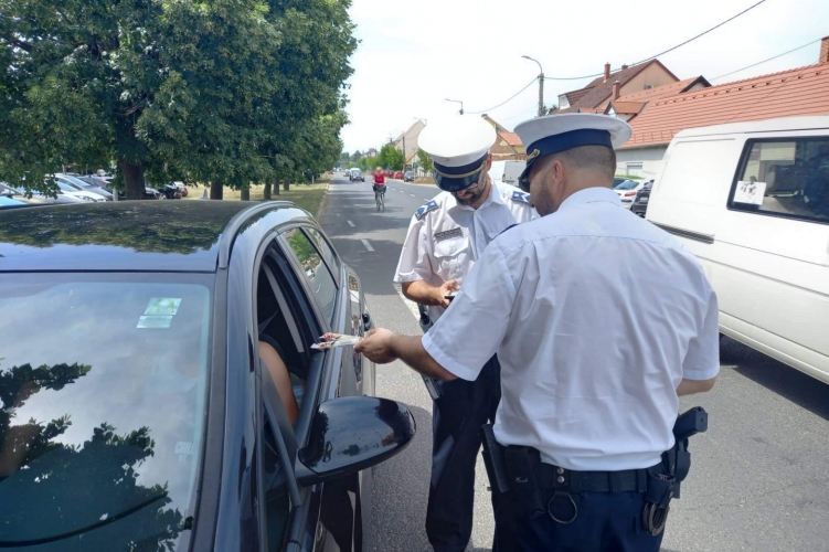 A sárvári rendőrök hideg, palackozott vizet és jégkrémet osztanak a közlekedőknek.