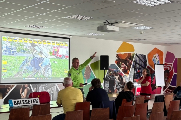 Dolgozóknak tartott közlekedésbiztonsági előadást a baleseti helyszínelő.