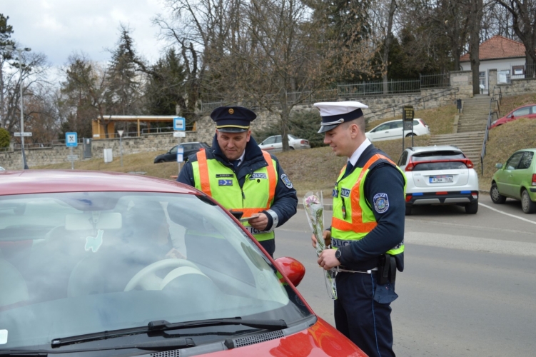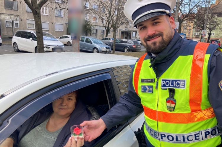 A Heves megyei rendőrök virággal köszöntötték a szabályosan közlekedő hölgyeket.