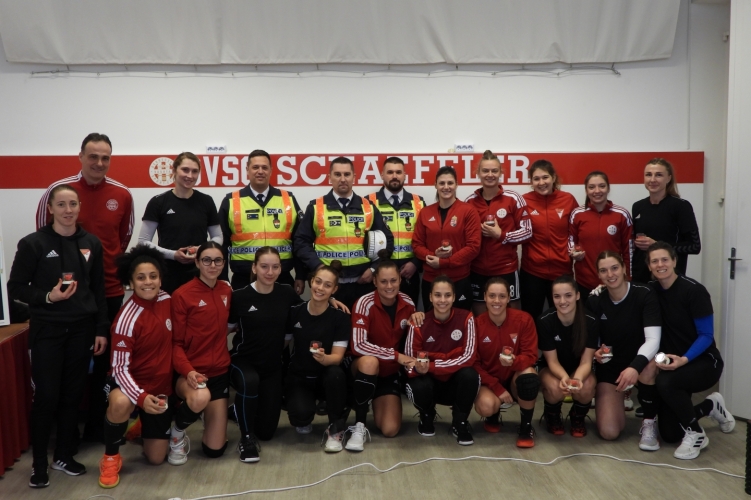 A hajdú-bihari rendőrök a DVSC NB1-es női kézilabdázóit lepték meg Nőnap alkalmából.