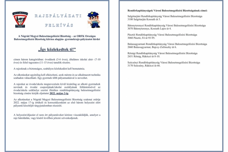 Nógrád megyei gyerekek rajzait várják a Nógrád Megyei Balesetmegelőzési Bizottság szakemberei.
