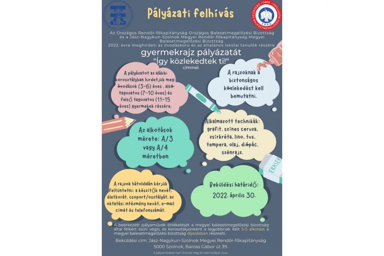A Jász-Nagykun-Szolnok Megyei Balesetmegelőzési Bizottság rajzpályázatot hirdet.