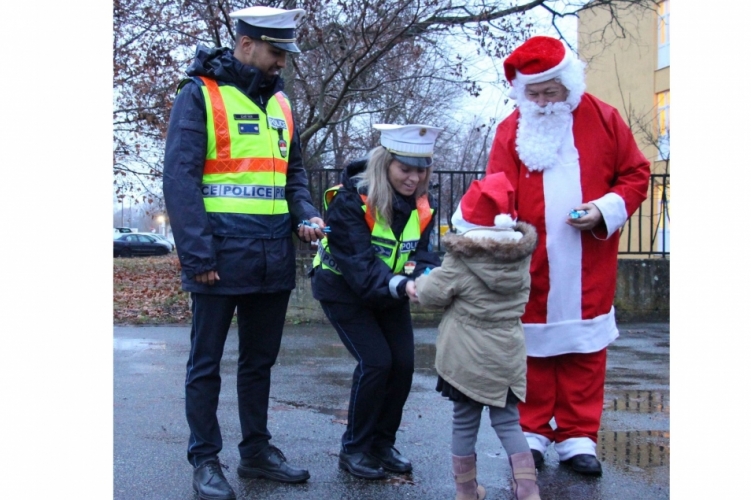 A rendőrök ajándékot osztottak a szabályosan közlekedő járművezetőknek.