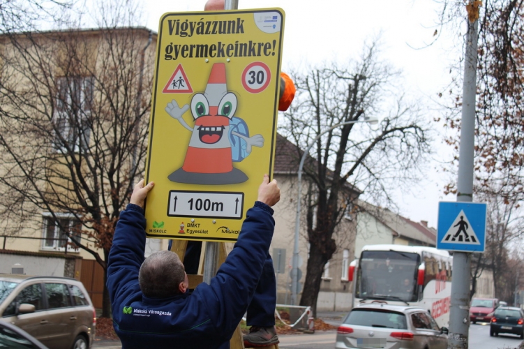 A szakemberek a miskolci oktatási intézmények környékén helyeztek ki figyelemfelhívó jelzőtáblákat a Látni és látszani kampány zárásaként.