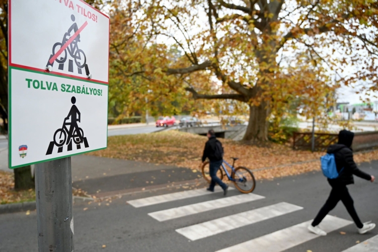 A gyalogos-átkelőhelyen történő szabályos áthaladásra figyelmeztető táblákat helyeztek ki a soproni rendőrök kerékpárosok részére.