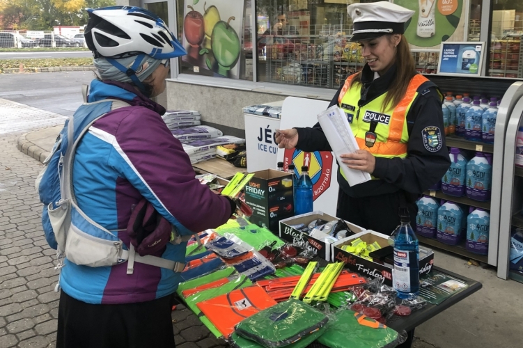 A rendőrök láthatósági eszközökkel és hasznos baleset-megelőzési tanácsokkal várták az érdeklődőket.