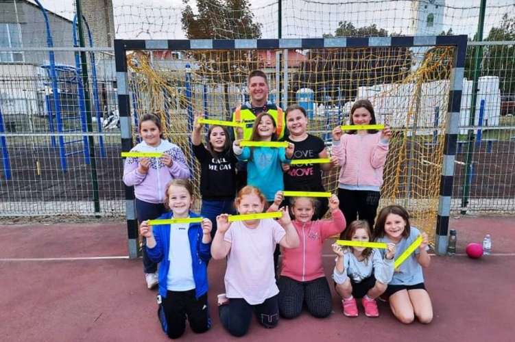 A rendőrök a helyi sportegyesület kézilabda edzésére látogattak ki, ahol a gyerekeket hasznos baleset-megelőzési tanácsokkal látták el.