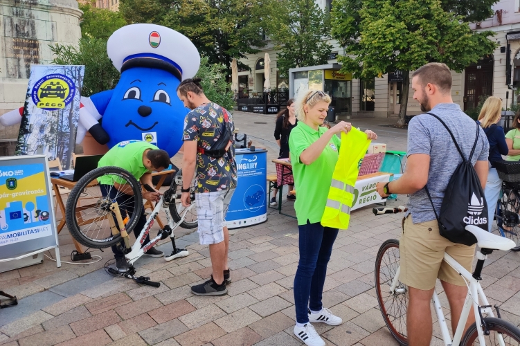 Reggelivel várták a Baranya Megyei rendőr-főkapitányság megelőzési munkatársai a kerékpárosokat Pécsett, a Széchenyi téren és a Pécsi Tudományegyetem Általános Orvostudományi Karán.